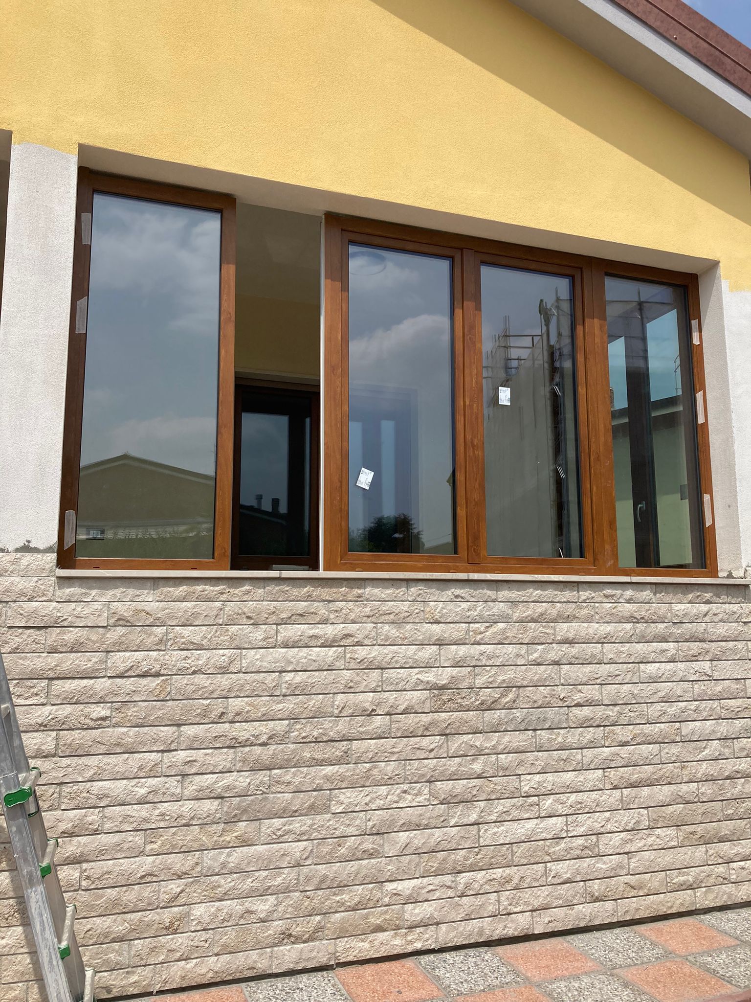 I nostri infissi sono caratterizzati da una struttura in alluminio a taglio termico e sono rivestiti internamente con il legno.